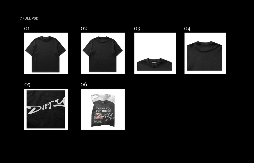 6 Files Boxy Tee PSD, Front and back, Washed Effect, Reverse stitch, Label brand